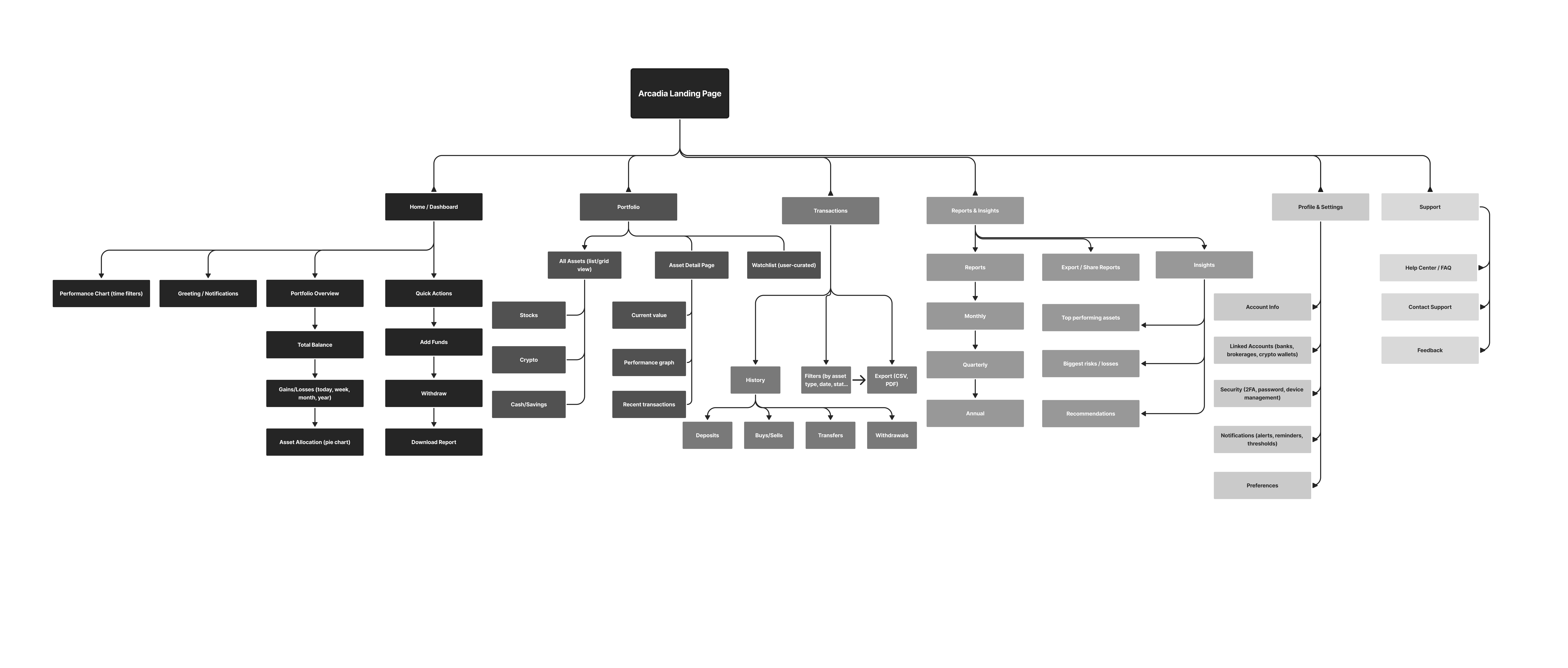 I designed Arcadia’s information architecture to simplify complex financial data into a clear, intuitive system.