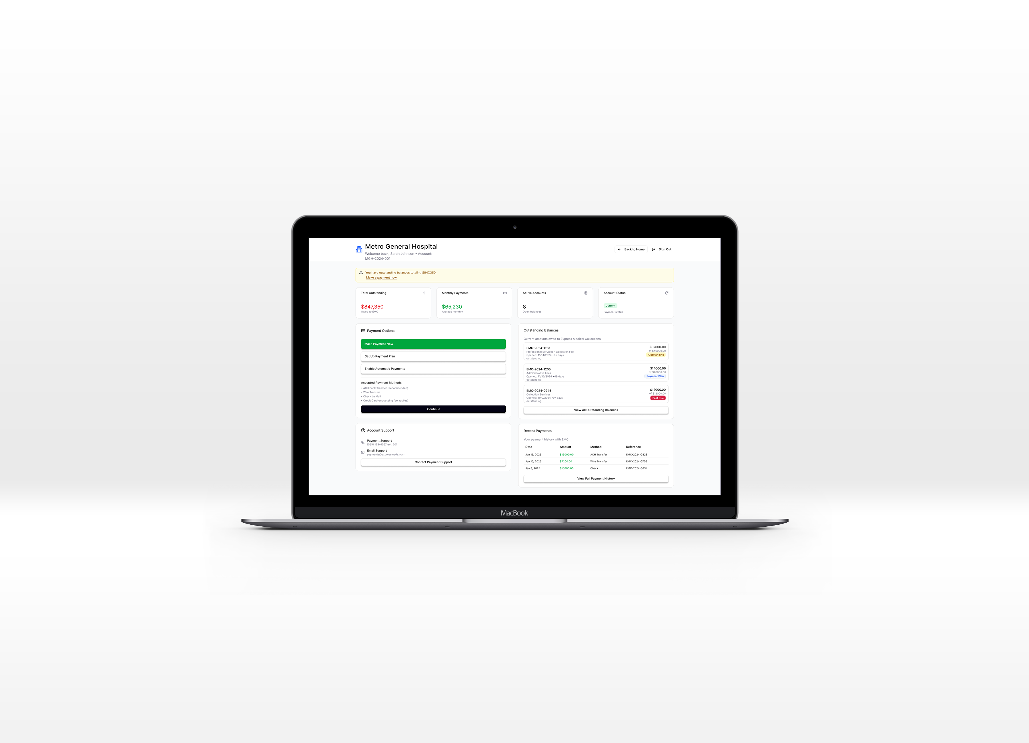 I led the design of a medical payment and account management platform that helps debtors clearly understand and manage their balances while giving administrators full visibility and control over complex cases.